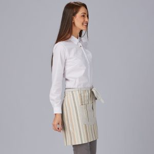 DELANTAL CORTO RAYAS COMBINADO 45X74 CM.Cintas para amarrar. Dos bolsillos delanteros. 45 x 74cm.