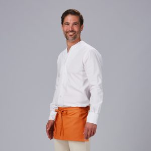 DELANTAL BISTRO SARGA POLIESTER 80X65 CM.1 bolsillo delantero. 1 bolsillo bolígrafo en pecho. Sistema de cierre con botón de pastilla. 80×65 cm.