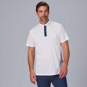 POLO HOMBRE CUELLO MAO TEJANO «RED LINE».Polos red-line. Tejido coolmax. Cuello mao con bies tejano. Largo aprox.: 72 cm. Prenda H1: ajustada.