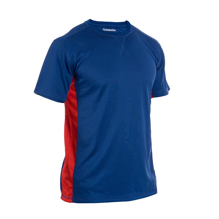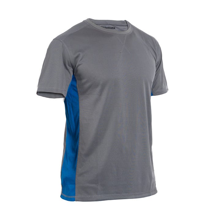 Camiseta de manga corta. Color base en gris o navy con franjas laterales en distinto tono. Tejido duradero y resistente. Cuello redondo bajo de tipo deportivo que otorga gran comodidad. Transpirable. Facilidad de lavado y secado rápido. Apto para impresión. Lavado a temperatura máxima 30º – No se puede planchar -No usar lejía – No permite limpieza en seco – No utilizar secadora – Max 25X.