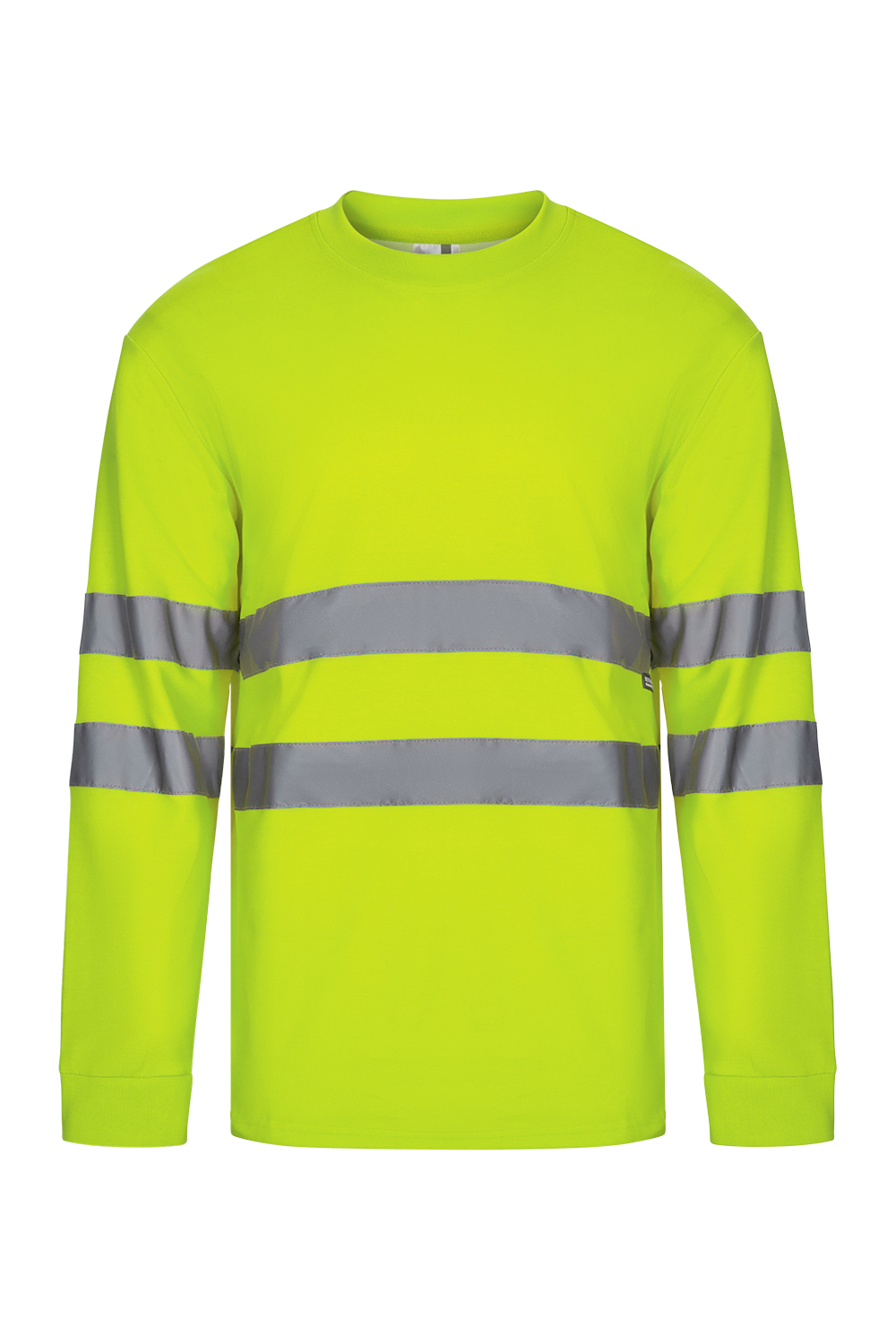 Cuello redondo de canalé Cubrecosturas con cinta de espiga Cintas reflectantes en torso y mangas Puños de canalé