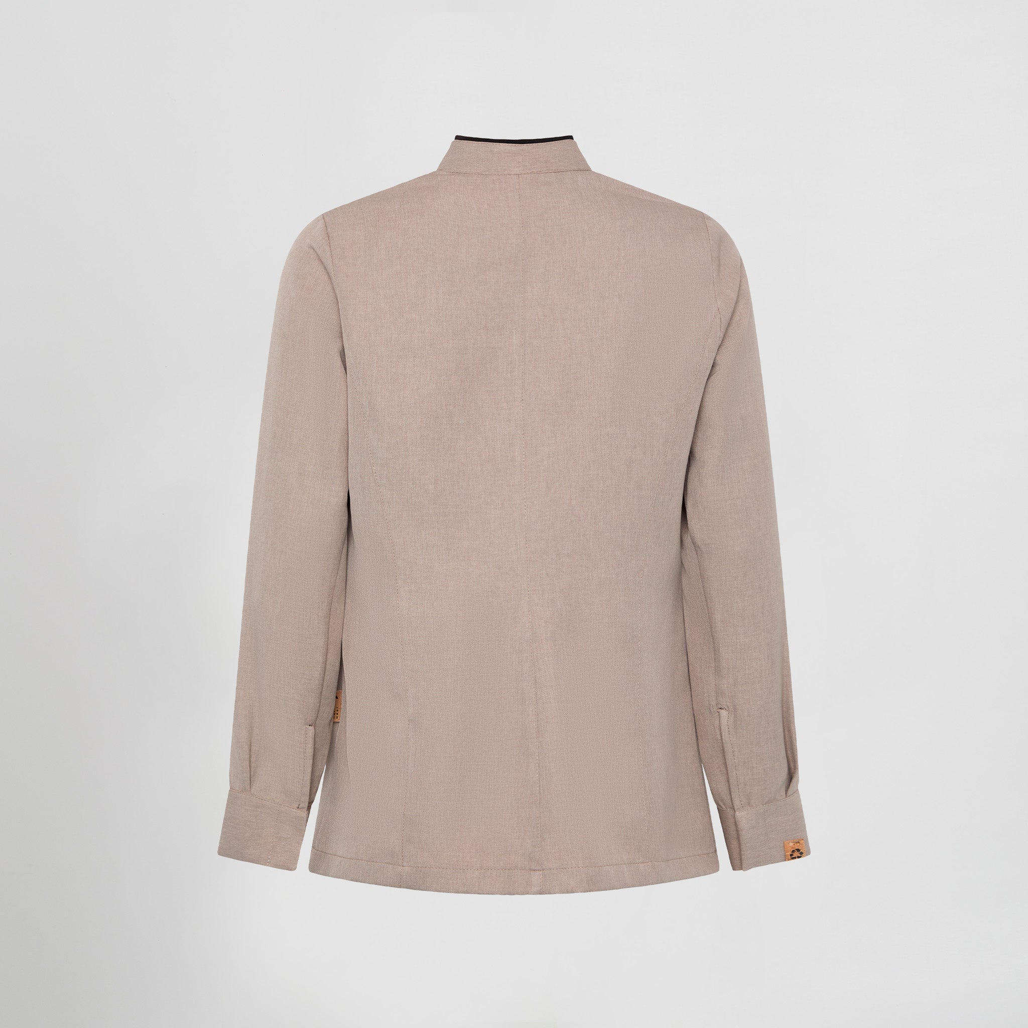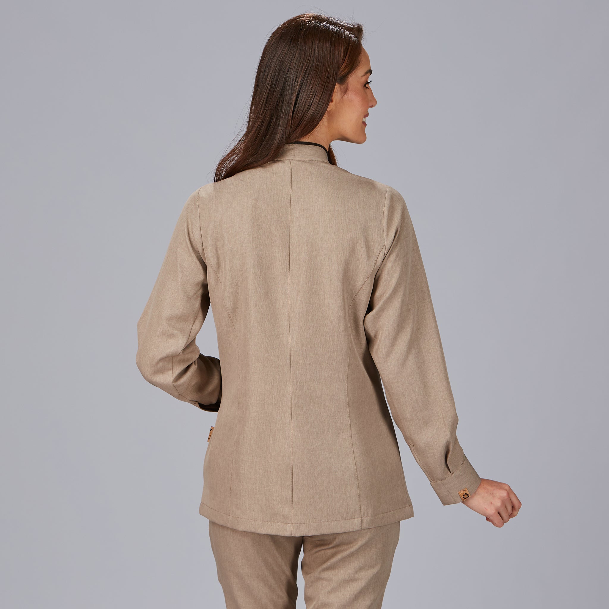 AMERICANA MUJER SIN FORRAR T400.Medio forro. Cuello solapa. 2 bolsillos laterales parche. 1 bolsillo en pecho de vivo. 63cm | M1 AJUSTADA.