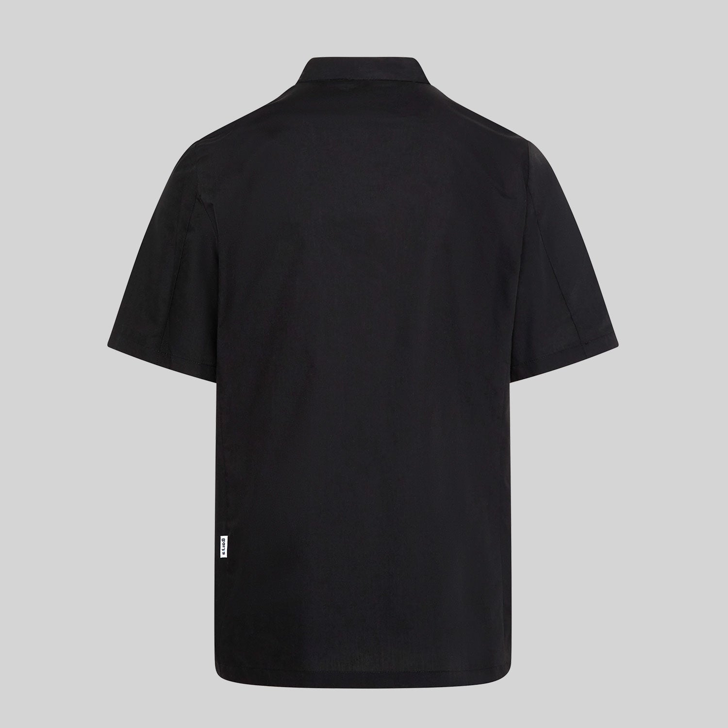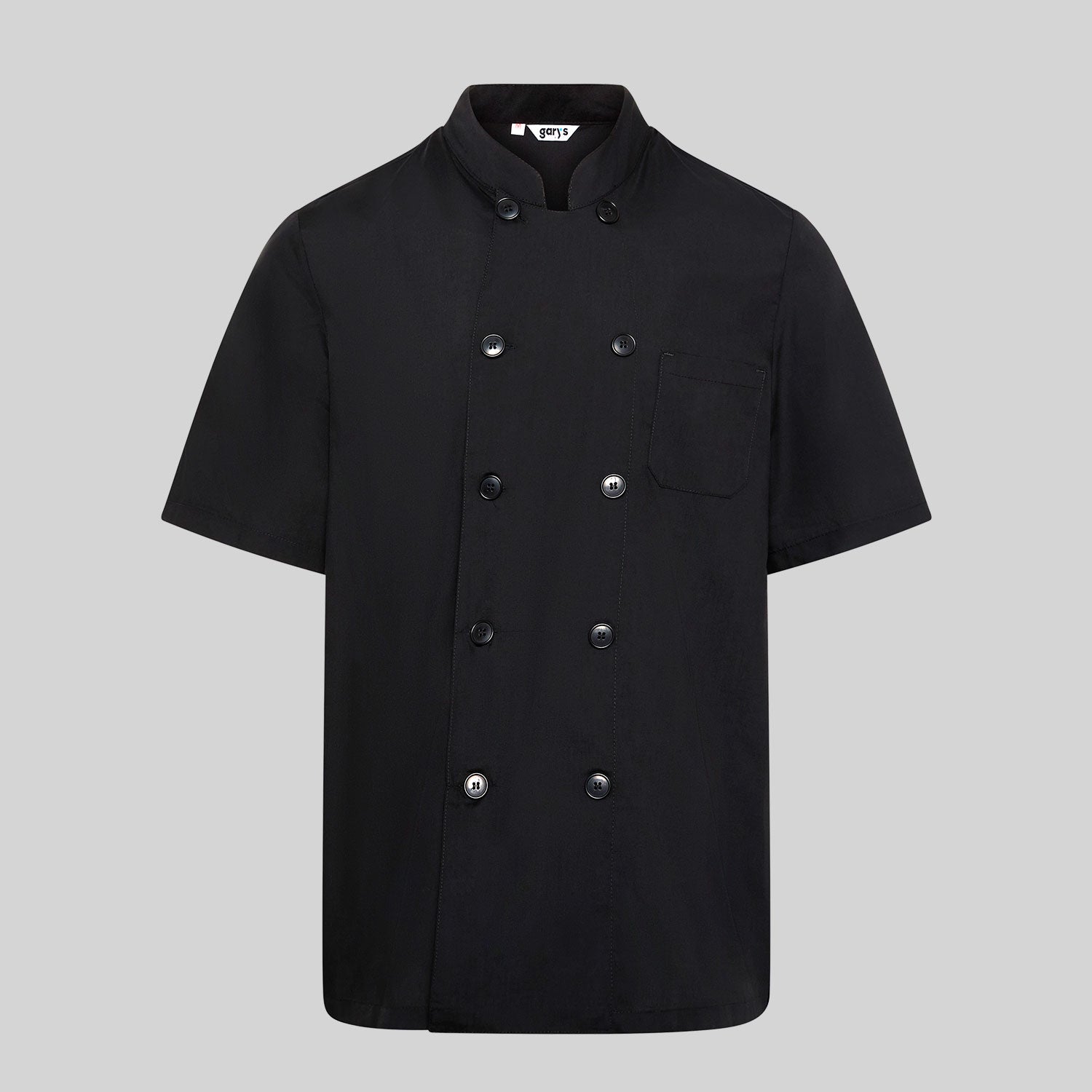 CHAQUETA COCINA UNISEX POPELIN FINO NEGRO M/C.Botones de pastilla. Bolsillo en pecho izquierdo. Largo aprox.: 72 cm. Prenda H2: semi ajustada