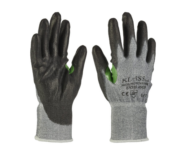 El F5X es un excelente guante de nivel de corte 5. Es de color negro por todas partes, con una palma recubierta de PU negra. Áreas de uso recomendadas fabricación de automóviles, montaje, manipulación de materiales, Mantenimiento general donde se requiera resistencia a la abrasión, cortes y perforaciones.