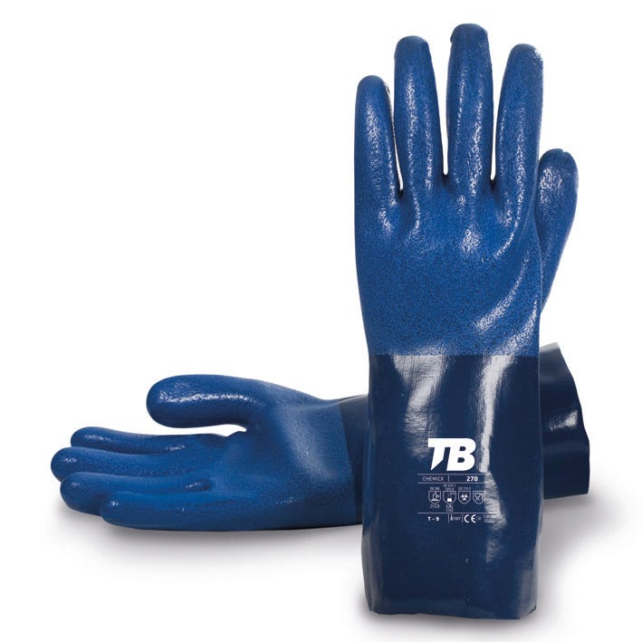 Guante nitrilo azul doble baño, de Uso General, Térmico Calor, Quimico, Alimentación, Impermeable 100%, Largo 270 TB