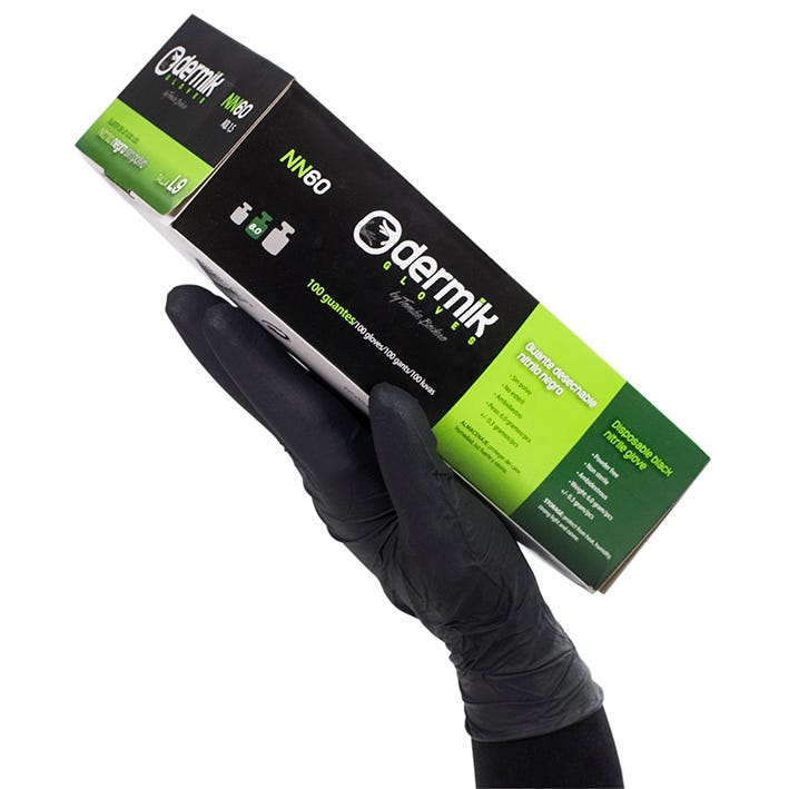 Guante nitrilo negro sin polvo.