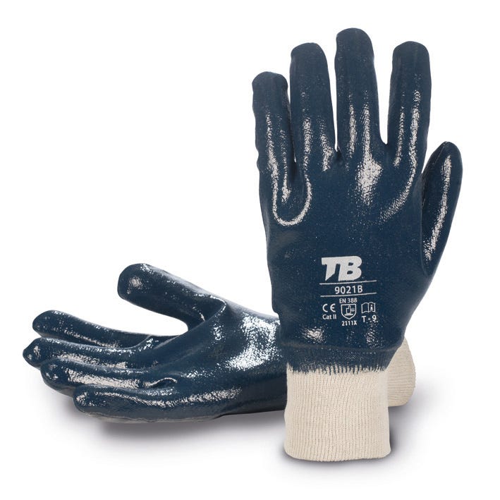 Guante soporte algodón jersey. Recubrimiento completo nitrilo azul. Puño elástico.9021B
