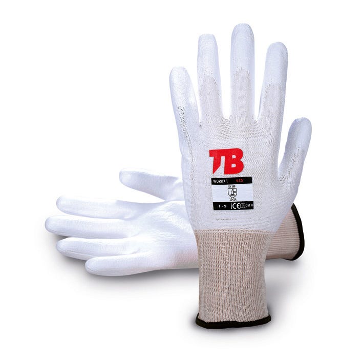 Guante soporte HPPE y elastano blanco sin costuras, de Uso General, Protección Corte 425 TB