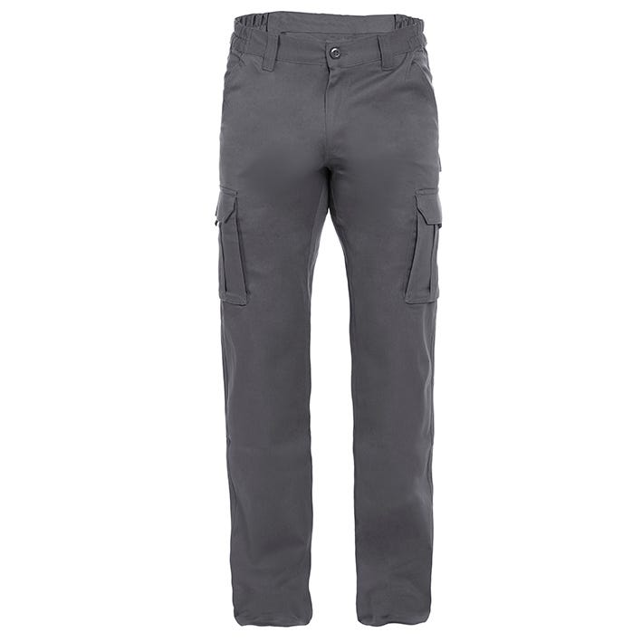 Pantalón elástico. Corte slim. Cierre central con cremallera y botón. Cinturilla elástica en laterales y con presillas antidesgarro. Doble costura de seguridad en la parte exterior. 2 bolsillos franceses delanteros. 2 bolsillos de fuelle laterales, con fuelle lateral y frontal, tapeta, velcro y tirador. 2 bolsillos traseros de plastón con tapeta, velcro y tirador. Lavado a temperatura máxima 30º – Se puede planchar a baja temperatura – No usar lejía – No permite limpieza en seco – No utilizar secadora – Max 25X.