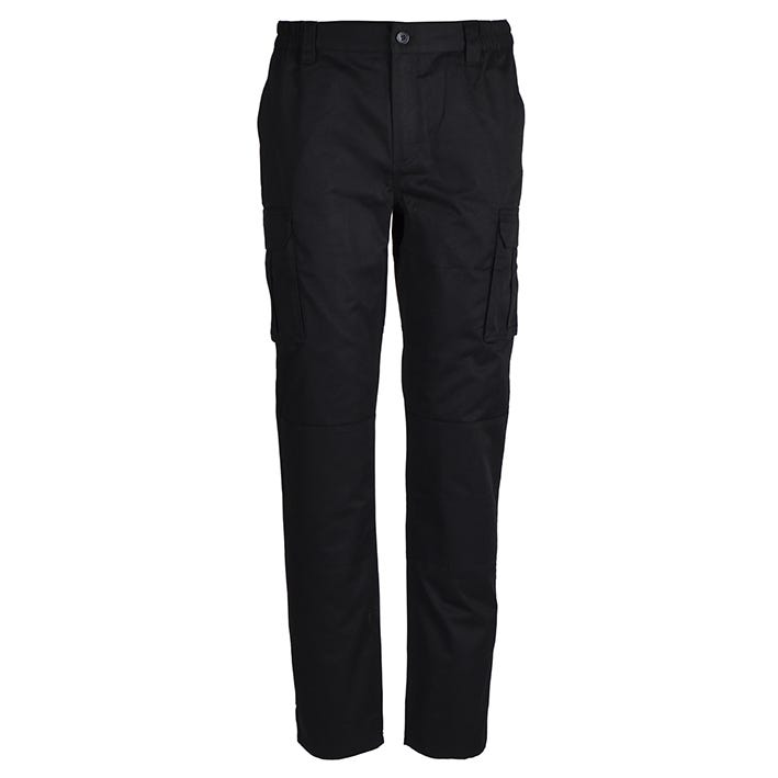 Corte slim. Cierre central con cremallera y botón. Cinturilla elástica en laterales y con presillas antidesgarro. Doble costura de seguridad en la parte exterior. 2 bolsillos franceses delanteros. 2 bolsillos de fuelle laterales, tapeta, velcro y tirador. 2 bolsillos traseros de plastón con tapeta, velcro y tirador. Refuerzo en traseras y rodillas. Lavado a temperatura máxima 30º – Se puede planchar a baja temperatura – No usar lejía – No permite limpieza en seco – No utilizar secadora – Max 25X.
