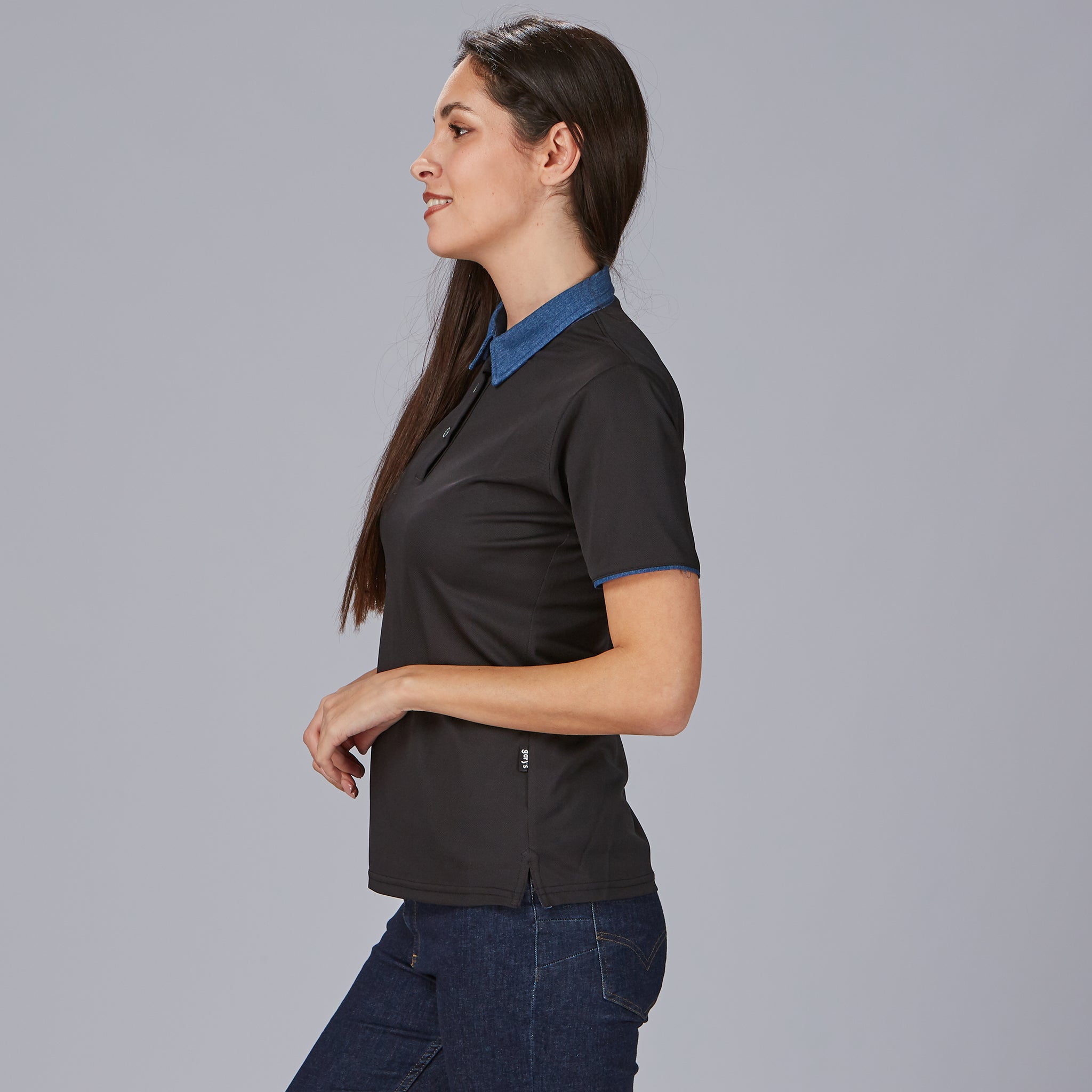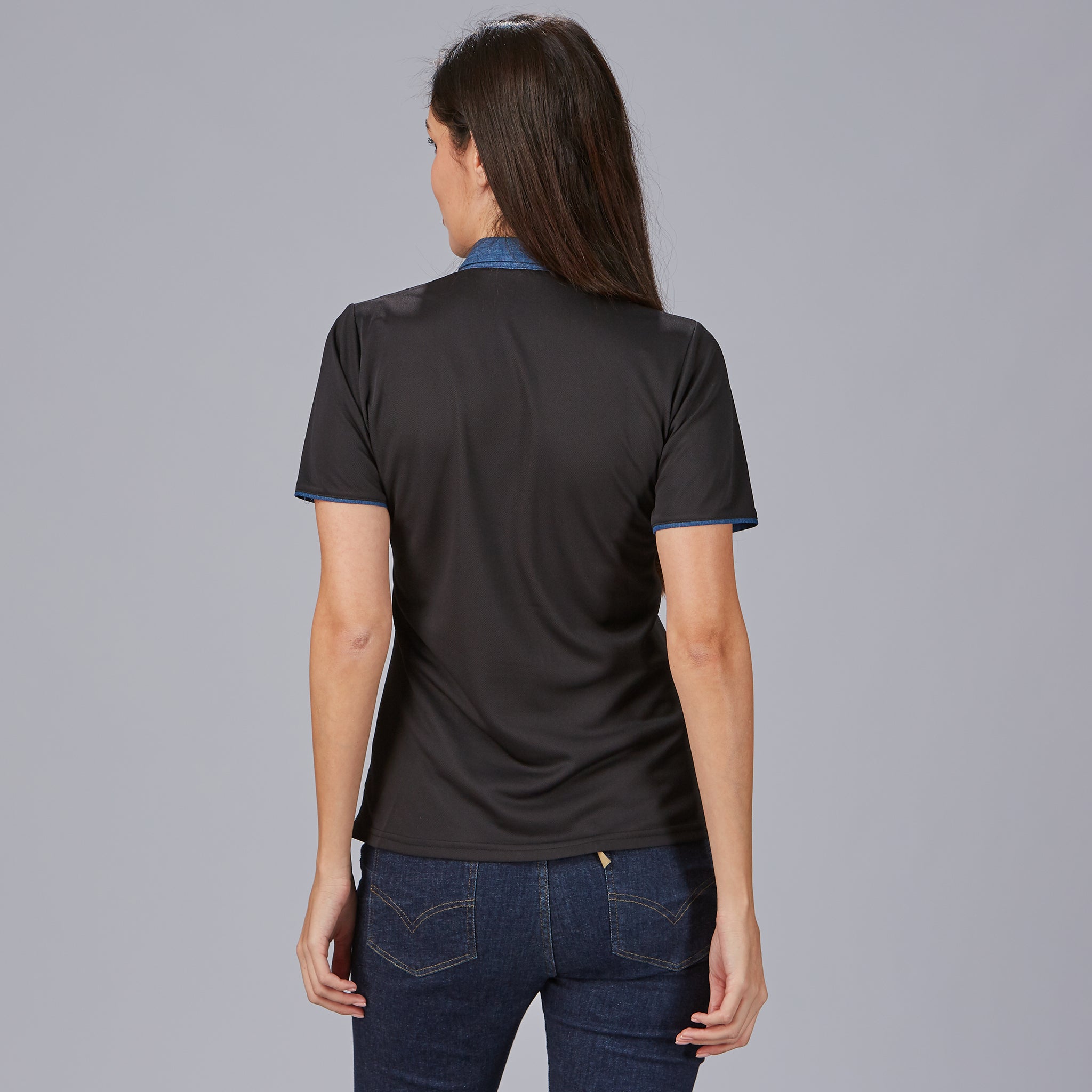 POLO MUJER CUELLO CAMISERO TEJANO «RED LINE».Polos red-line. Tejido coolmax. Cuello camisero. Largo aprox.: 65 cm. Prenda H1: ajustada.