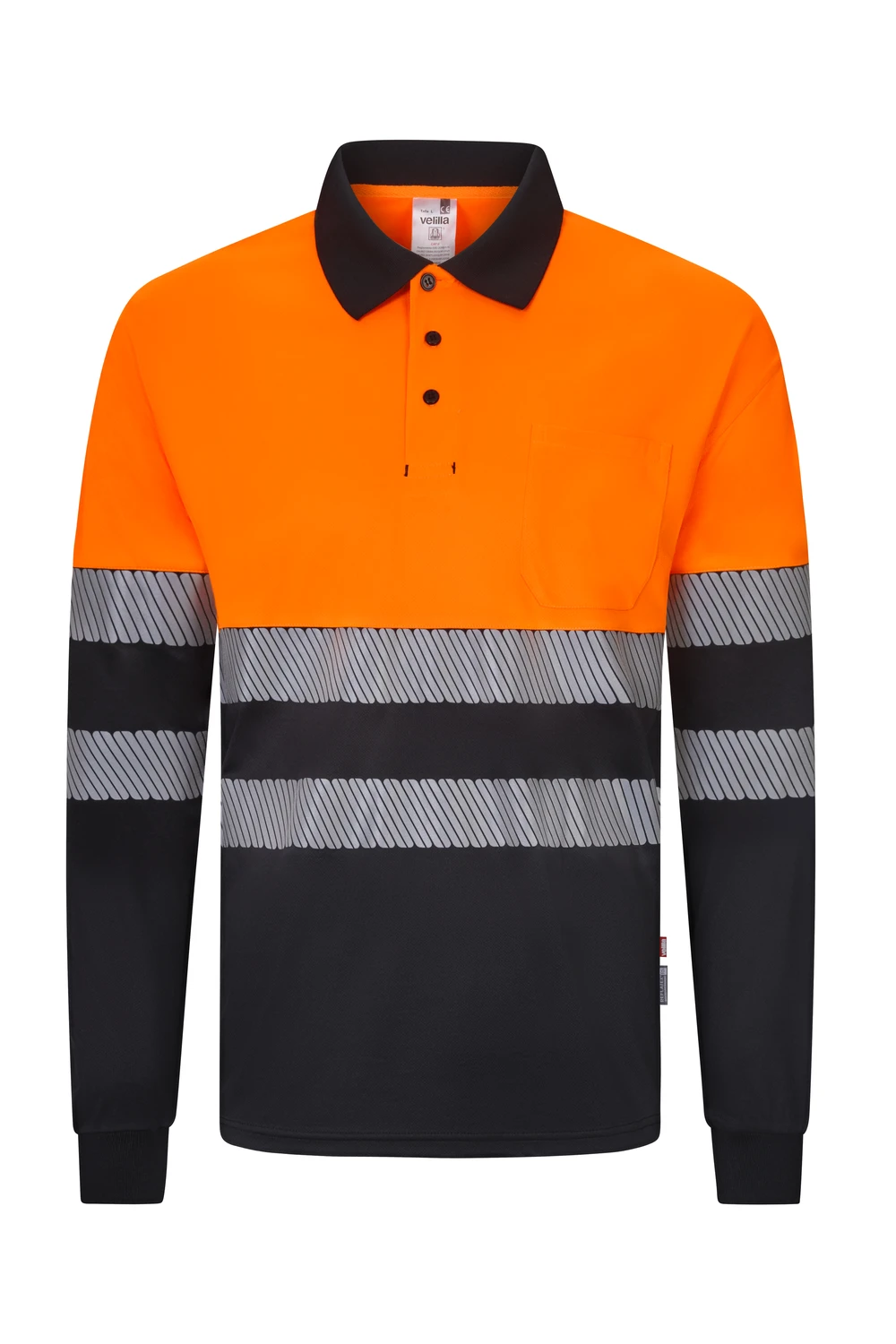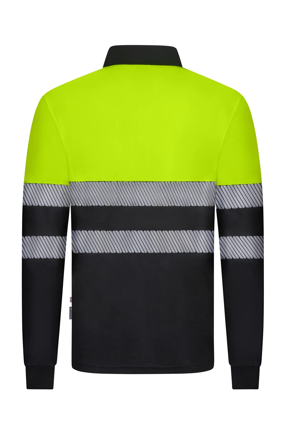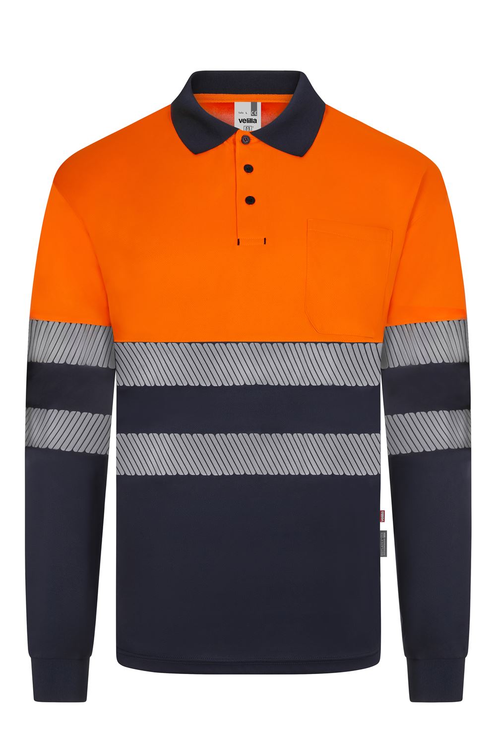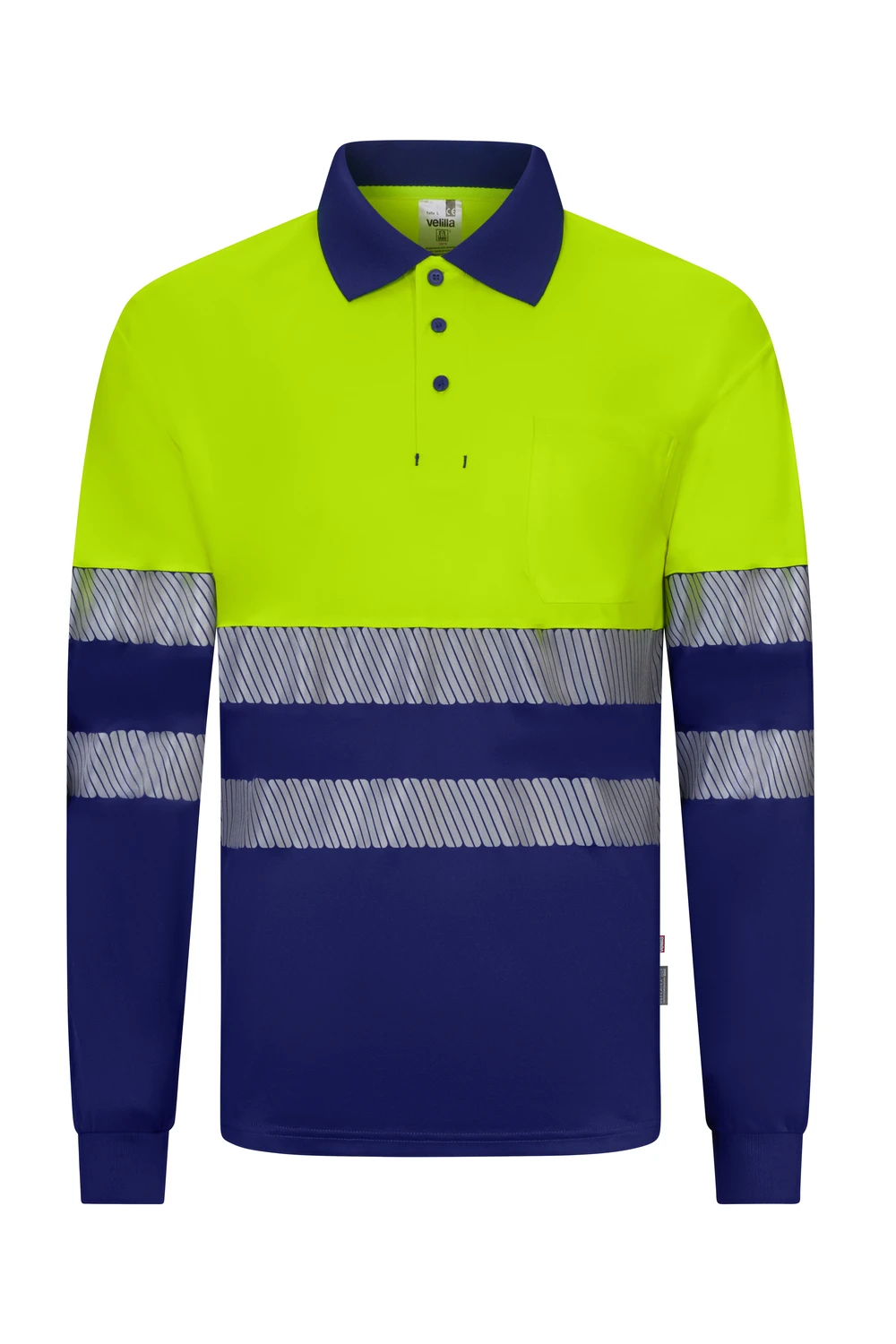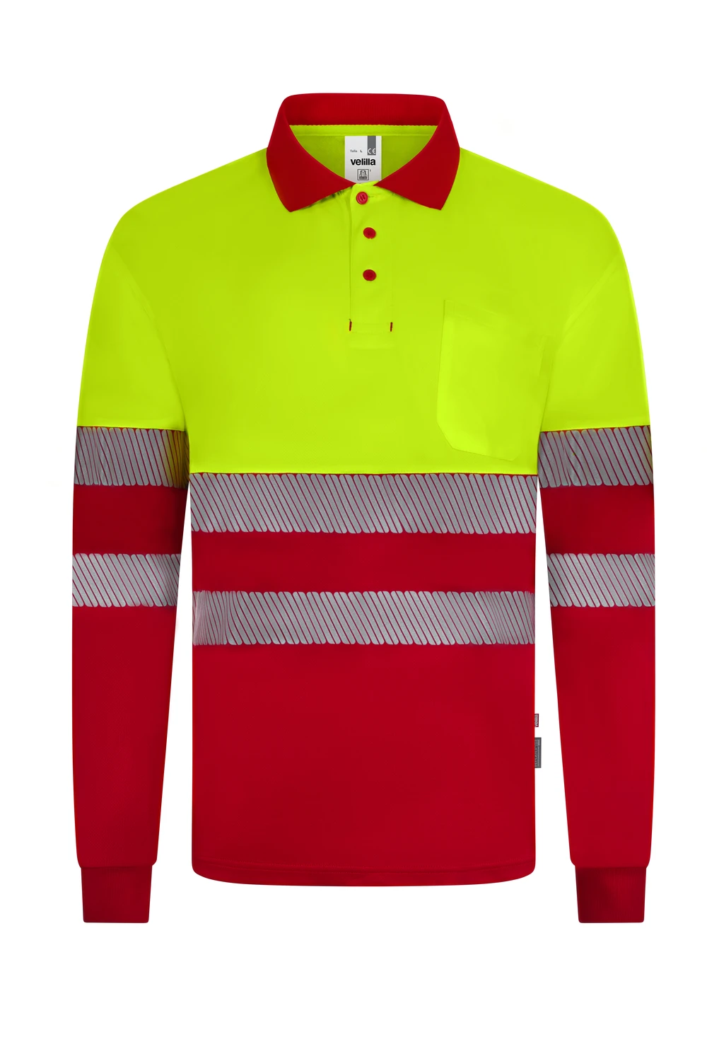 Polo poliéster reciclado bicolor manga larga cinta segmentada VELILLA