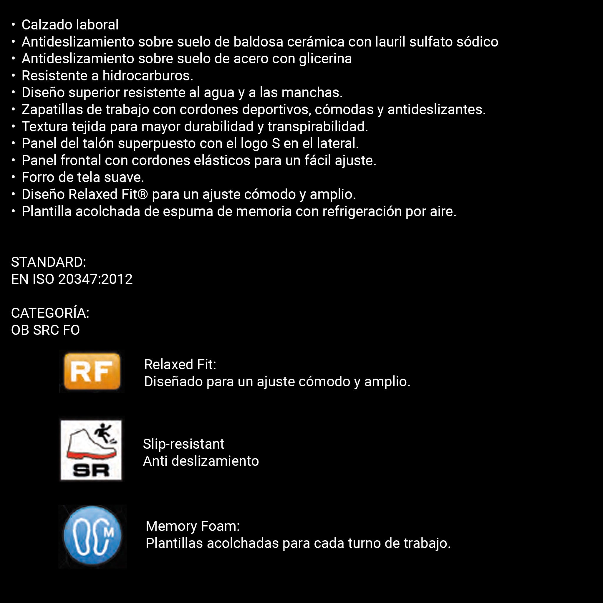 – Talón 3,17 cm STANDARD: EN ISO 20347:2012 CATEGORY: OB FO SR TALLAS: 35-36-37-38-39-40-41